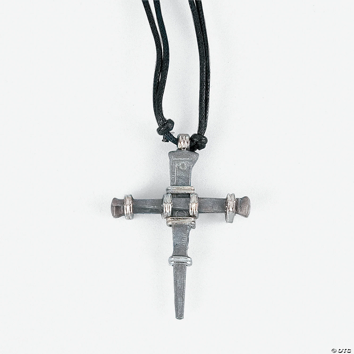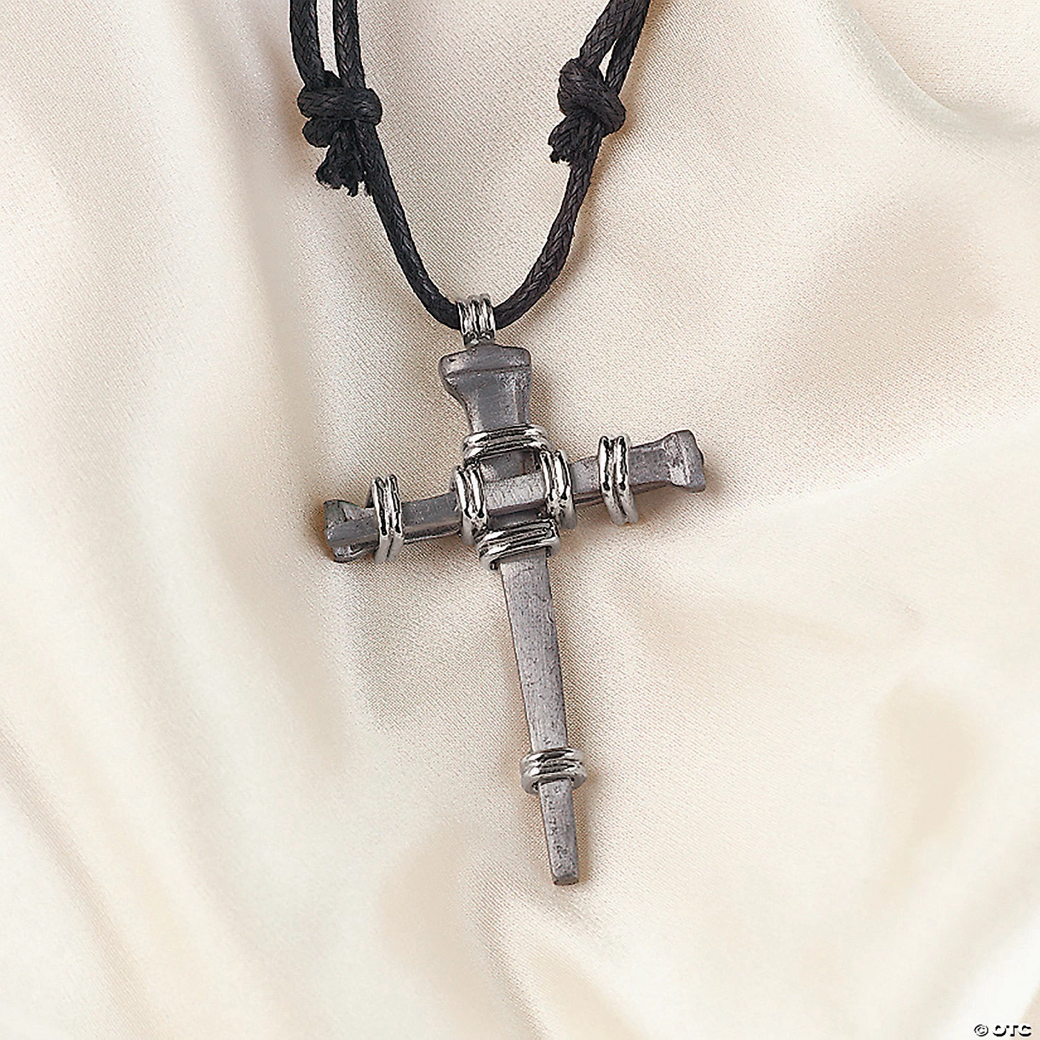 Pewtertone Nail Cross Necklaces. These necklaces have crosses made from pewtertone nails! They make great Easter gifts or inspirational gifts for church groups. Each 2″ pewtertone metal cross is on a 24″ black nylon cord with a breakaway clasp. © OTC