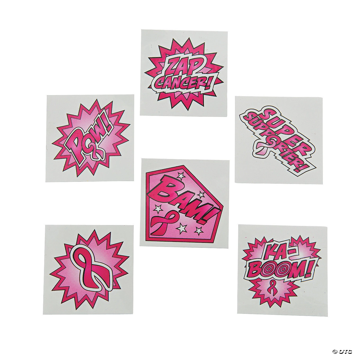 Take your reast Cancer Awareness support to heroic levels with these Pink Ribbon Superhero Tattoos! Easy to apply and remove. Safe and non-toxic. (6 dozen per unit) Paper. 1 1/2″ x 1 1/2″ © OTC