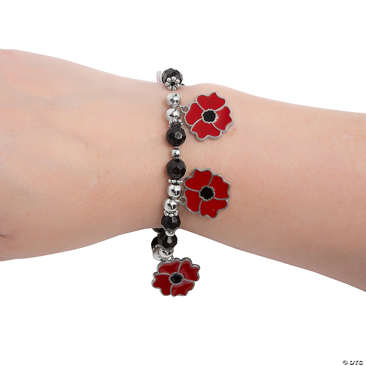 Creating jewelry just got easier with this charm bracelet-making craft kit that requires no additional tools or materials. Featuring enough supplies for up to a dozen kids to make a charm bracelet, this red poppy charm bracelet is an excellent choice for Memorial Day crafts for kids or to accompany a lesson in the classroom on honoring members of the Armed Forces. Includes 3/4″ metal charms, 8mm acrylic beads and stretchy plastic cording. 14″ circ. Makes 12. All craft kit pieces are pre-packaged for individual use. Kits include instructions. © OTCPoppy Charm Bracelet Instructions