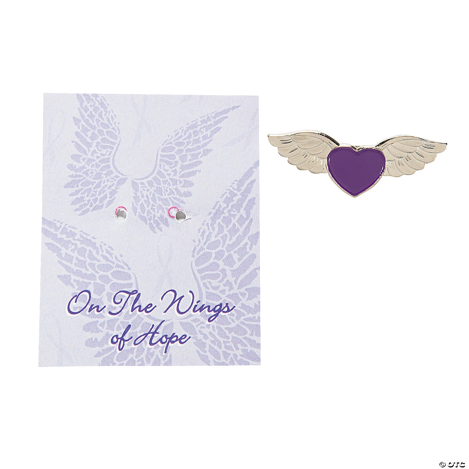Help support and bring awareness to your cause with this purple ribbon pin. Great for awareness walks and events, and a great filler for gift bags and giveaways. Each inspirational card reads, “On the Wings of Hope”. Each 1 3/4″ metal charm is on a 2″ x 2 1/2″ paper card. © OTC