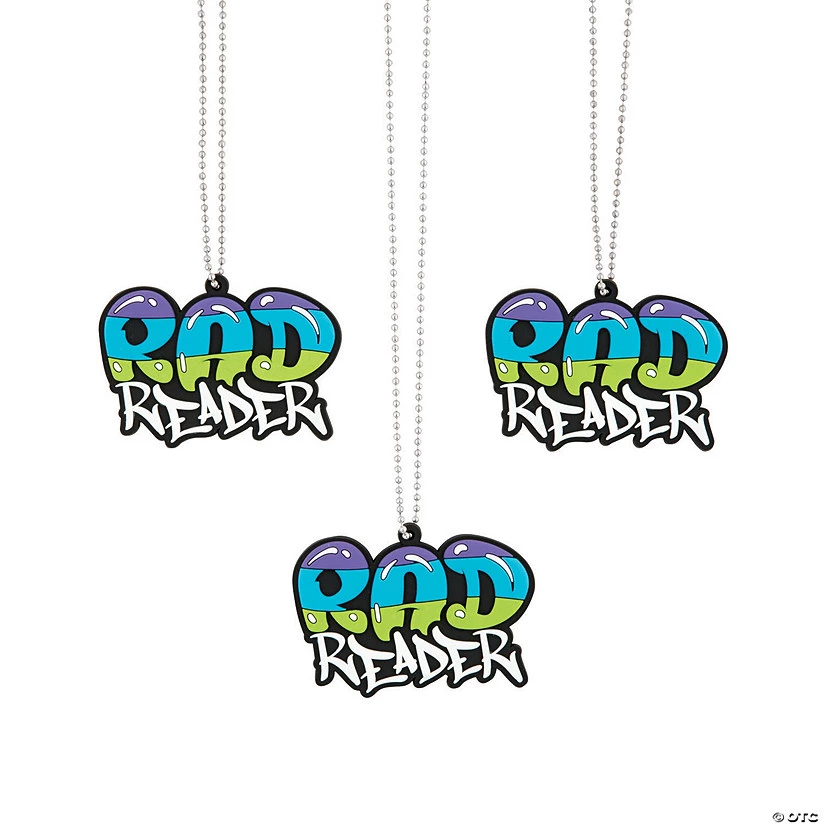 Recognize students for completing book after book in the coolest of ways! A great addition to classroom rewards, these necklaces feature text that states “Rad Reader” in graffiti styled letters. Fun finds like this are great for encouraging excellence and can easily be incorporated into teaching strategies to help students meet their goals. Now, your little bookworms will be excited to read story after story! Rubber. 3″ x 2″ charm on a 24″ metal ball chain. Ā© OTC