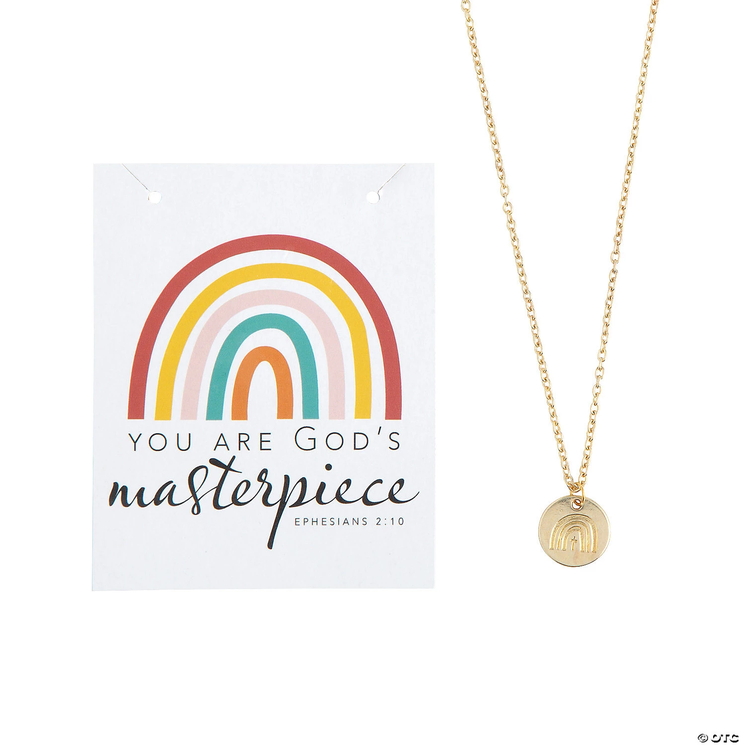 Just as rainbows are God’s masterpieces, so are each and every one of us! These necklaces, featuring a rainbow over a cross, come on a card referencing Ephesians 2:10, all about how we are His workmanship. Wear one of these necklaces to remind yourself of how unique you are and give the rest to fellow believers as thoughtful birthday gifts or baptism presents. Metal necklace, 18″ with 2″ extender; cardstock card, 3″ x 3 3/4″. © OTC