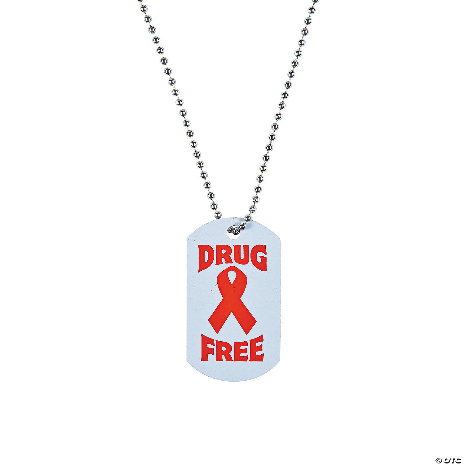 Spread the important message of drug prevention when sporting these dog tag necklaces! A perfect addition to red ribbon week supplies, these necklaces come printed with an assortment of messages like “It’s up to me to be drug free” and “I’m too smart to start.” Playful yet meaningful statements like these really resonate with kids, so they’ll love to wear and share these handouts. Perfect for giveaways at school or community fundraising events. Metal. 2″ pendant on a 24″ ball chain. © OTC