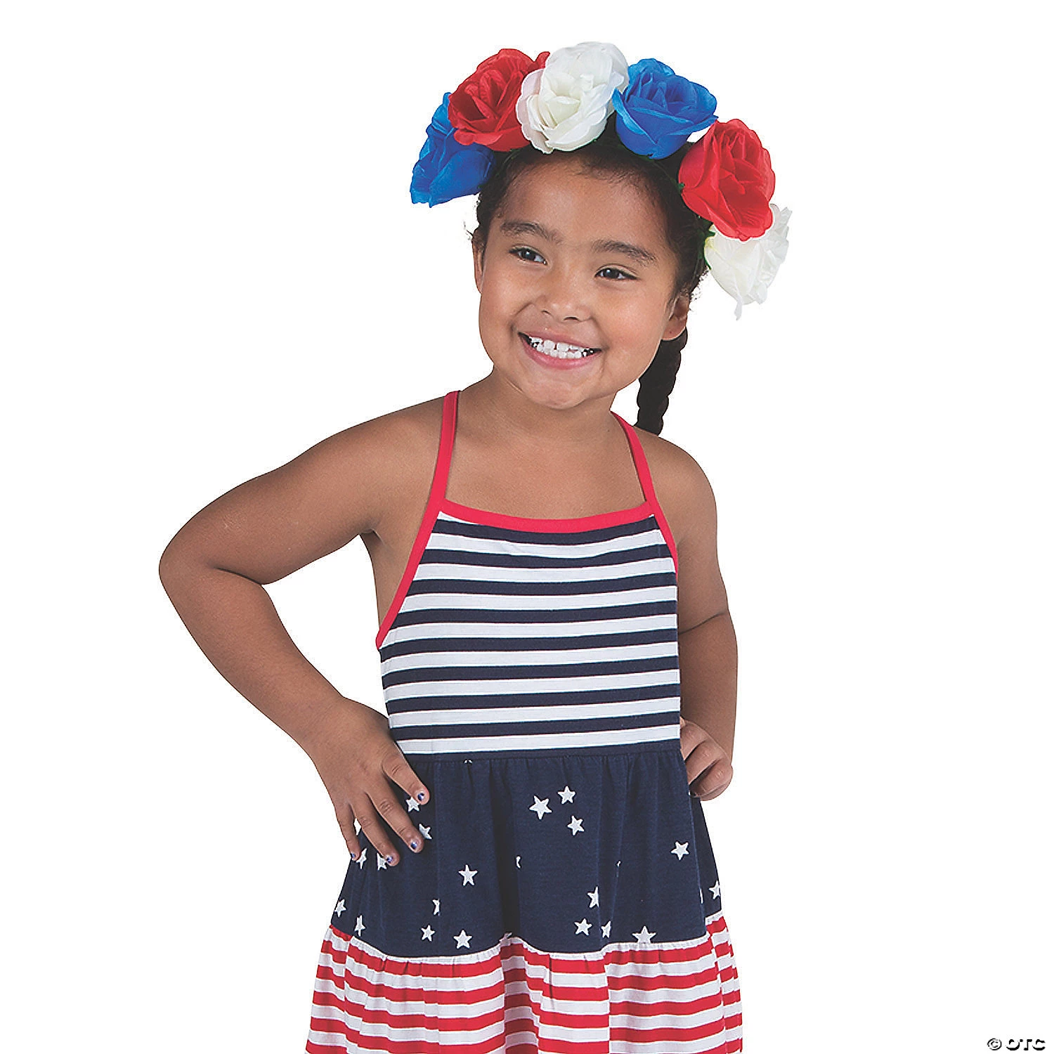 Let this floral fashion make you feel fabulous this Fourth! Perfect for patriotic party accessories, this headband features faux roses in hues of red, white and blue. Whether attending a firework show or just looking for the perfect finishing touch to your parade outfit, this headband has you looking Yankee-doodle-dandy! Plastic with elastic band and polyester flowers. 10″