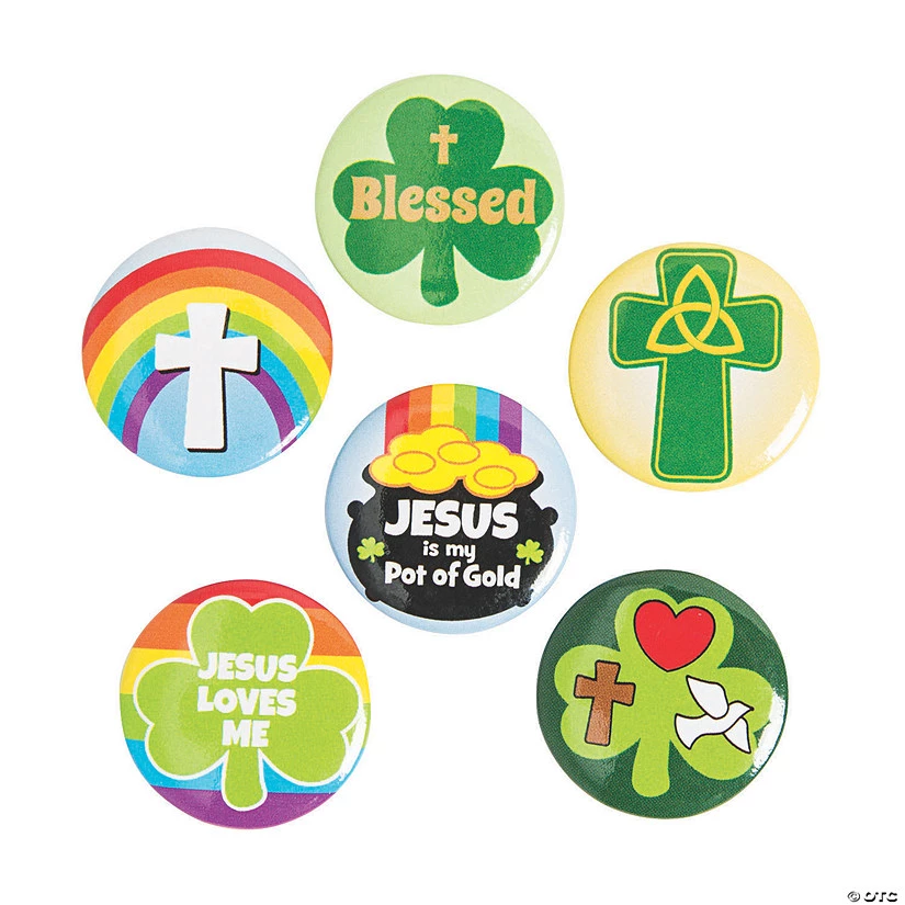 Celebrate both the luck of the Irish and your faith this St. Patrick’s Day with these Religious St. Patrick’s Day Mini Buttons. Perfect as St. Paddy’s Day giveaways, these small buttons feature plenty of shamrocks, rainbows and religious imagery. Metal. (4 dozen per unit) 1″ diam. © OTC