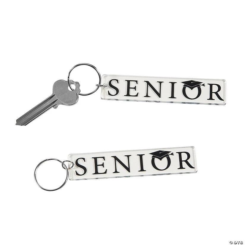 For seniors only! Celebrate a graduating senior’s accomplishments with these keychains. Great as a pep rally handout for senior class members or as stock for the school store, these keychains feature the bold message “Senior” along with a graduation cap and tassel image. Gift these keychains to students entering their senior year to help them get excited about graduating. Plastic. 3 1/2″ x 3/4″ with 1″ metal ring.