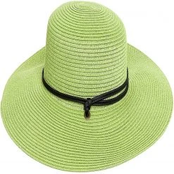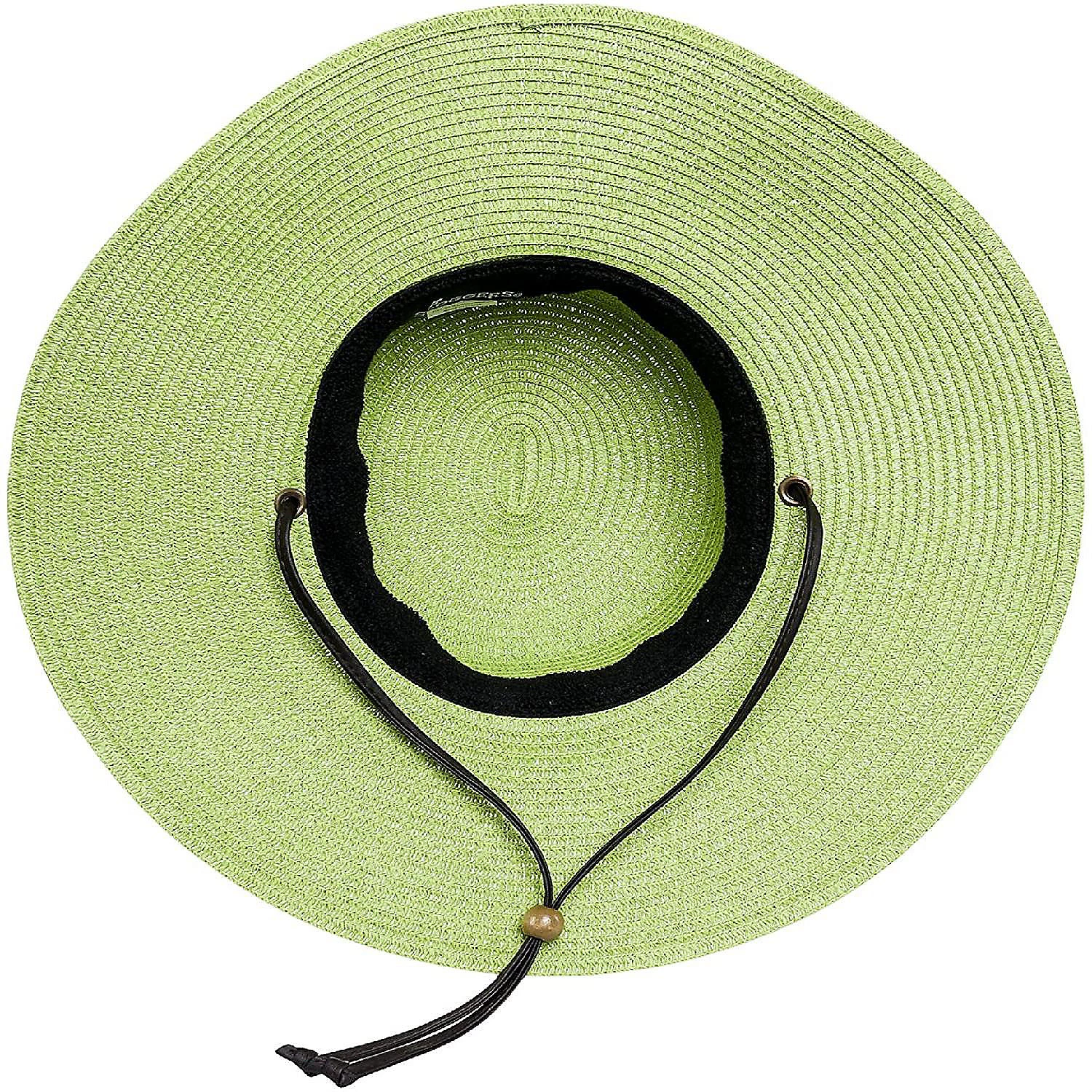 Sloggers Womens Wide Brim Braided Sun Hat with Wind Lanyard, Tea Green