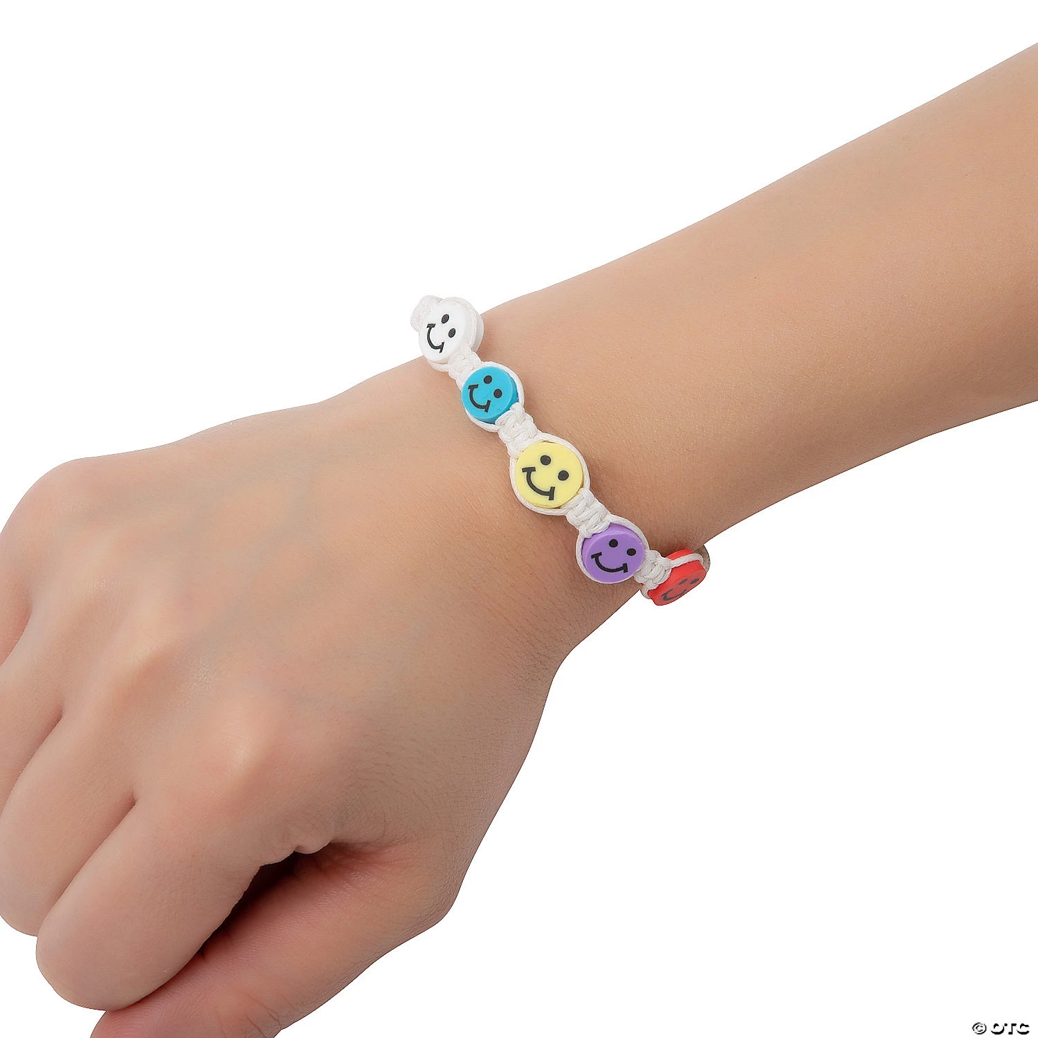 Everything is all smiles with these cute braided bracelets. Each bracelet has 5 smile face beads that are so charming, it just makes you want to smile back! Give these bracelets out as birthday party favors, classroom rewards, or as prizes at a carnival. Includes 1/4″ plastic beads. Adjusts to 11 1/2″ circ.