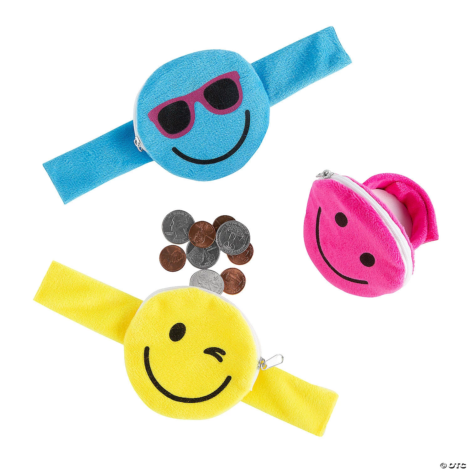 Slap on some fun with these cute plush slap bracelets! Perfect for birthday party favors and prizes, each smile face slap bracelet features a little coin purse so they’ll have their spare change with them wherever they go! Features a zipper closure. Plush-covered metal. 8 1/2″ x 3 1/2″ © OTC