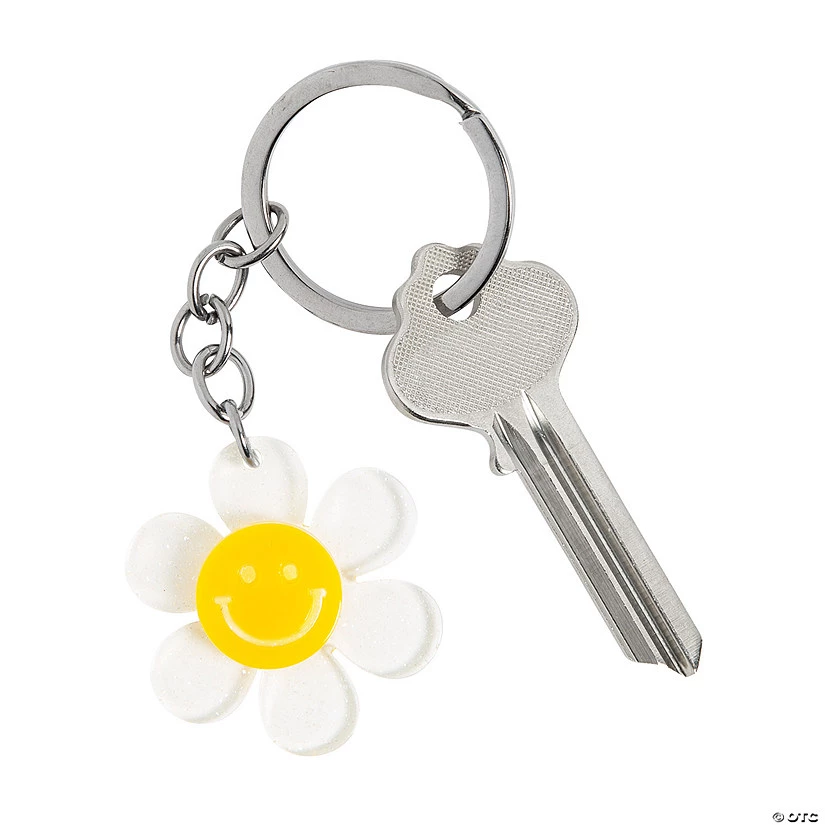 These daisy keychains are here to brighten your day! Whether you’re picking these up as cheery birthday party favors, classroom rewards or other fun gifts, these keychains are sure to make loved ones smile with appreciation. Keep one for yourself to add a touch of sunshine to your own keychain or backpack! Plastic. 1 1/2″ x 1 1/2″ on a 1″ metal ring.