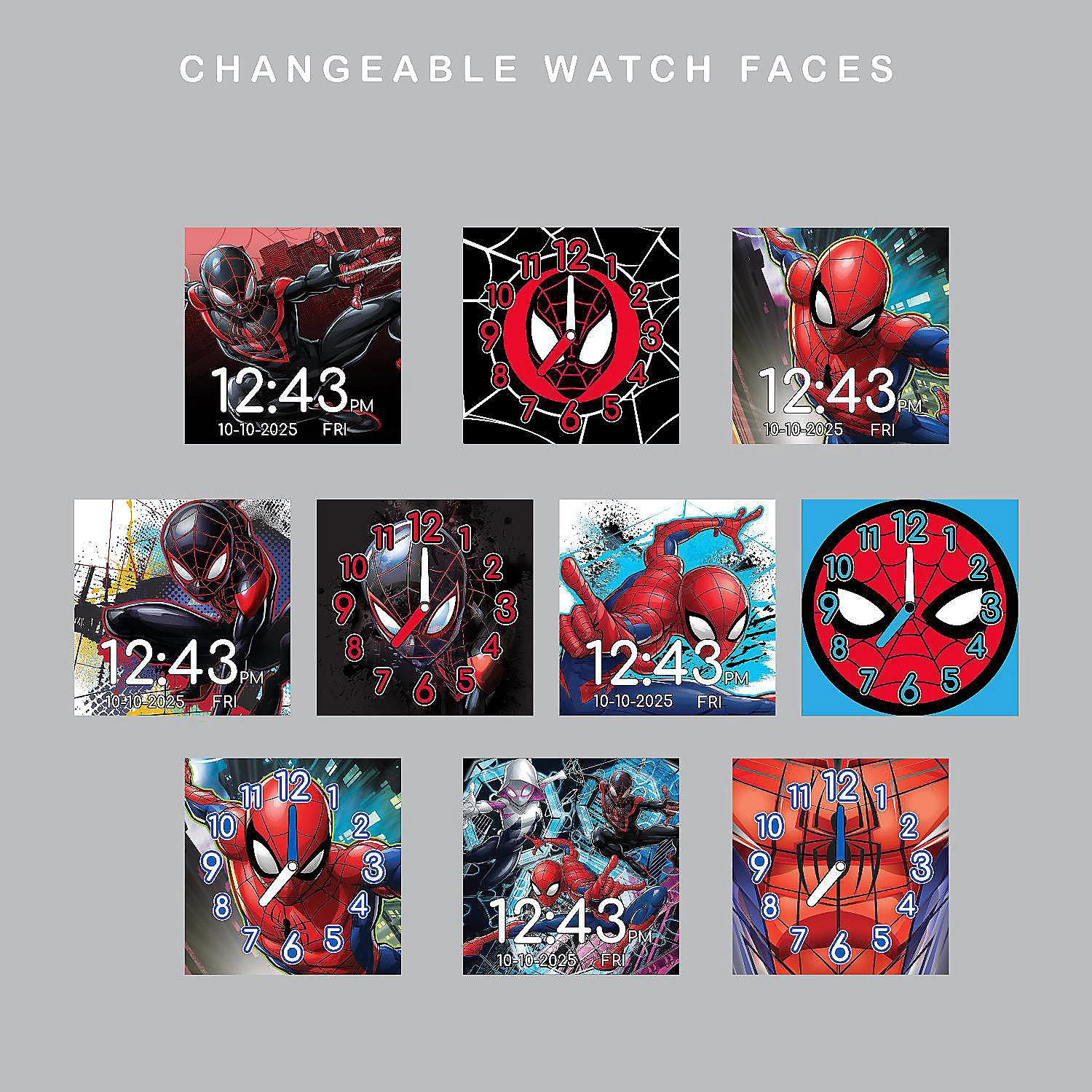 SpiderMan iTime Smartwatch in Red – SPD4706; MATERIAL & QUALITY – Premium quality plastic case with printed silicone straps. MULTIFUNCTIONAL – Effortless and easy to use, touch screen smartwatch with selfie-cam, voice recorder, games, pedometer, alarm, stopwatch, calculator and more. USABILITY & VERSATILITY – Everyday watch for the modern kids, fun selfie camera, download your awesome photos and videos – share these precious times with friends and family in a safe and secure way! FINEST DESIGN & PERFOMANCE – Trendy and fashionable, this watch allows you to use with any style. Durable and Long-lasting battery performance makes easy to use through day and night. Comes with USB charging cable for the USB port. 10 changeable watch faces, unique and suitable for all. ONE YEAR WARANTY – One-Year Warranty valid through Accutime. Please contact manufacturer directly for inquiries.