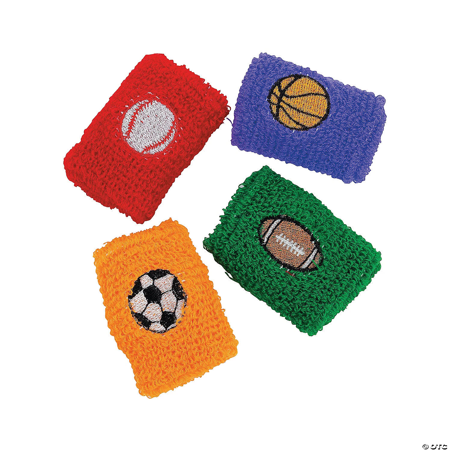 Sport Ball Wristbands. Give these fantastic wristbands as favors at your next sports-themed party. All the popular sports are represented: baseball, basketball, football and soccer. Your little sports fans will go wild for these unique sweatbands. Each 2 3/4″ terry cloth wristband has an embroidered ball design. Assorted color bands may include white. Imported.