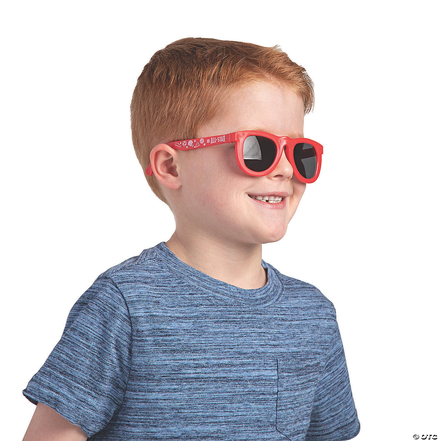Don’t let the sun get in your all-star’s way! With illustrations of multiple sports on the stems, these colorful, cool shades are the sports-themed birthday party favor or team gift that keeps the sun out of young athletes’ eyes in style, no matter what season it is. They also make a fun last-day-of-school classroom giveaway to celebrate summer. For novelty use only. Plastic. 5″ x 1 3/4″ with 4 1/2″ ear pieces. © OTC