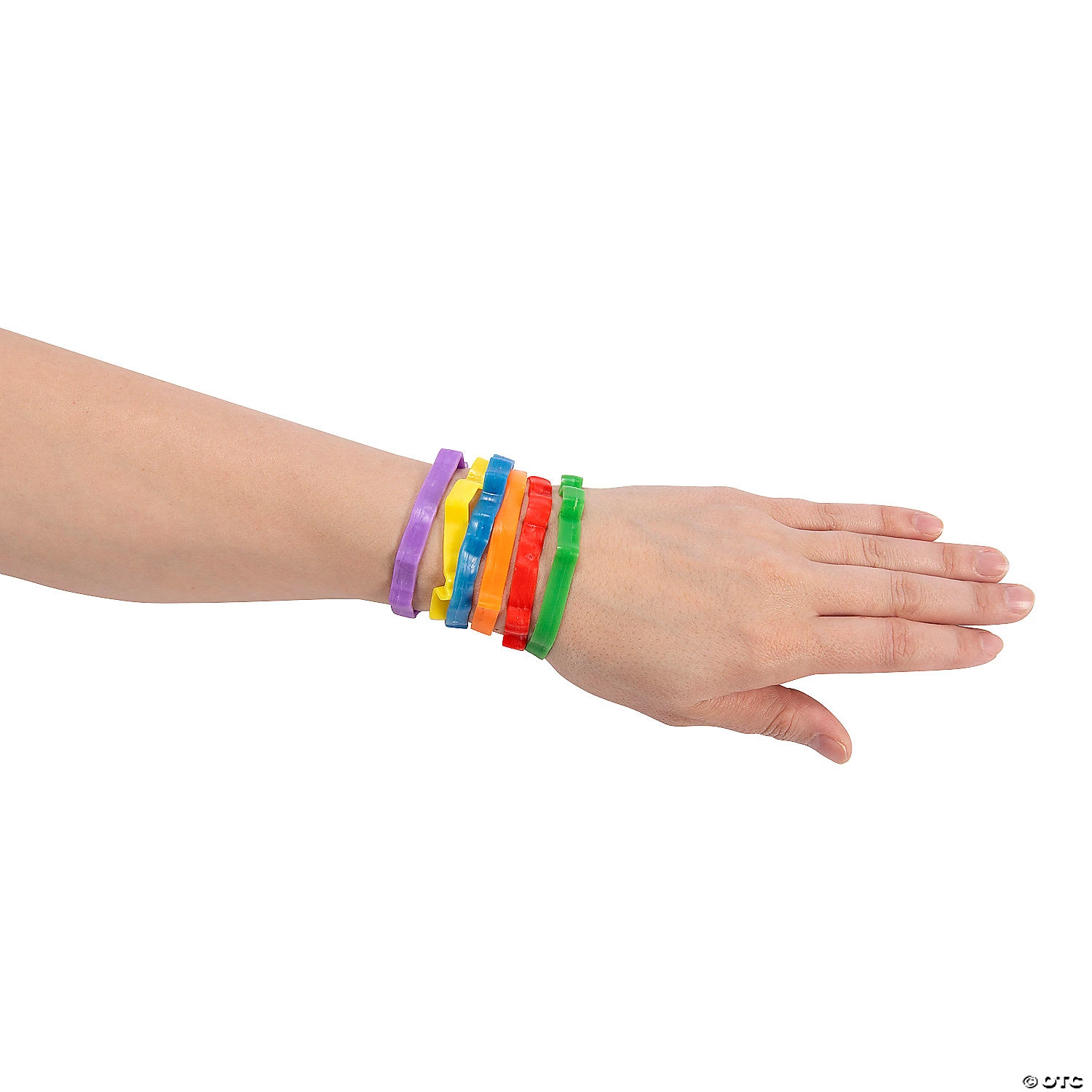 These super-sized fun bands are dino-mite! Give them away as prizes or party favors, or add them to your classroom incentives and hand them out for good behavior. Little dino lovers will love collecting all of the different shapes and colors, and they’ll love layering them on as rubber bracelets. Rubber. (6 pcs. per set, 6 sets per unit) 4″
