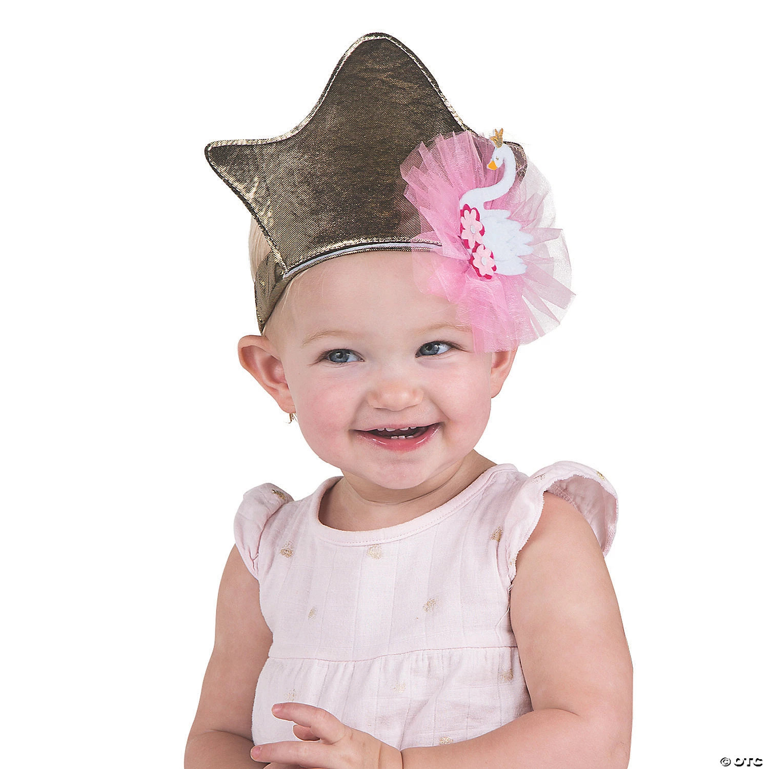 Your little birthday girl should be the center of attention, and she needs a crown! This Sweet Swan Baby Headband Crown is the perfect birthday hat for your little sweetie, and it’ll look amazing in her first birthday party pictures that you’ll treasure forever. With all of the Sweet Swan party supplies on this website, you won’t need to look through all of the ugly ducklings! Polyester with elastic band and touch fasteners. 17″ x 6″ © OTC