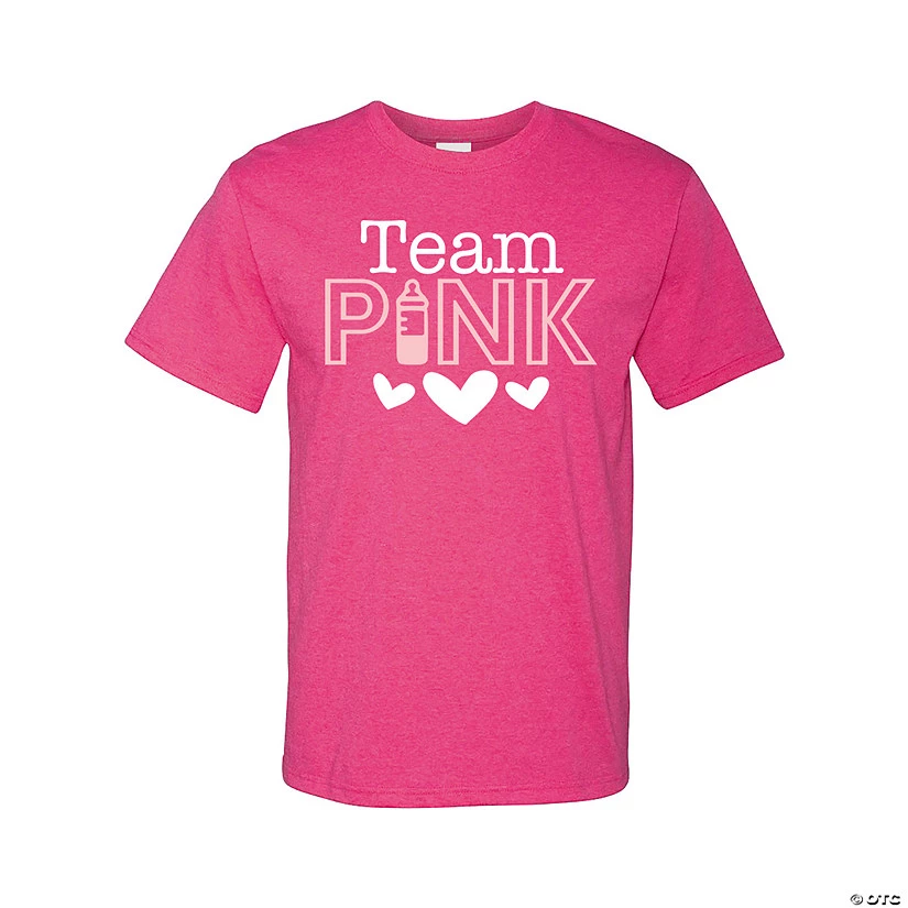 Let everyone know which side you are on with this rosy t-shirt! Perfect for a gender reveal party or baby shower, this graphic t-shirt proudly proclaims a vote for Team Pink! Plus, it’s a fun way to get friends and family members excited for the baby on the way! © OTC