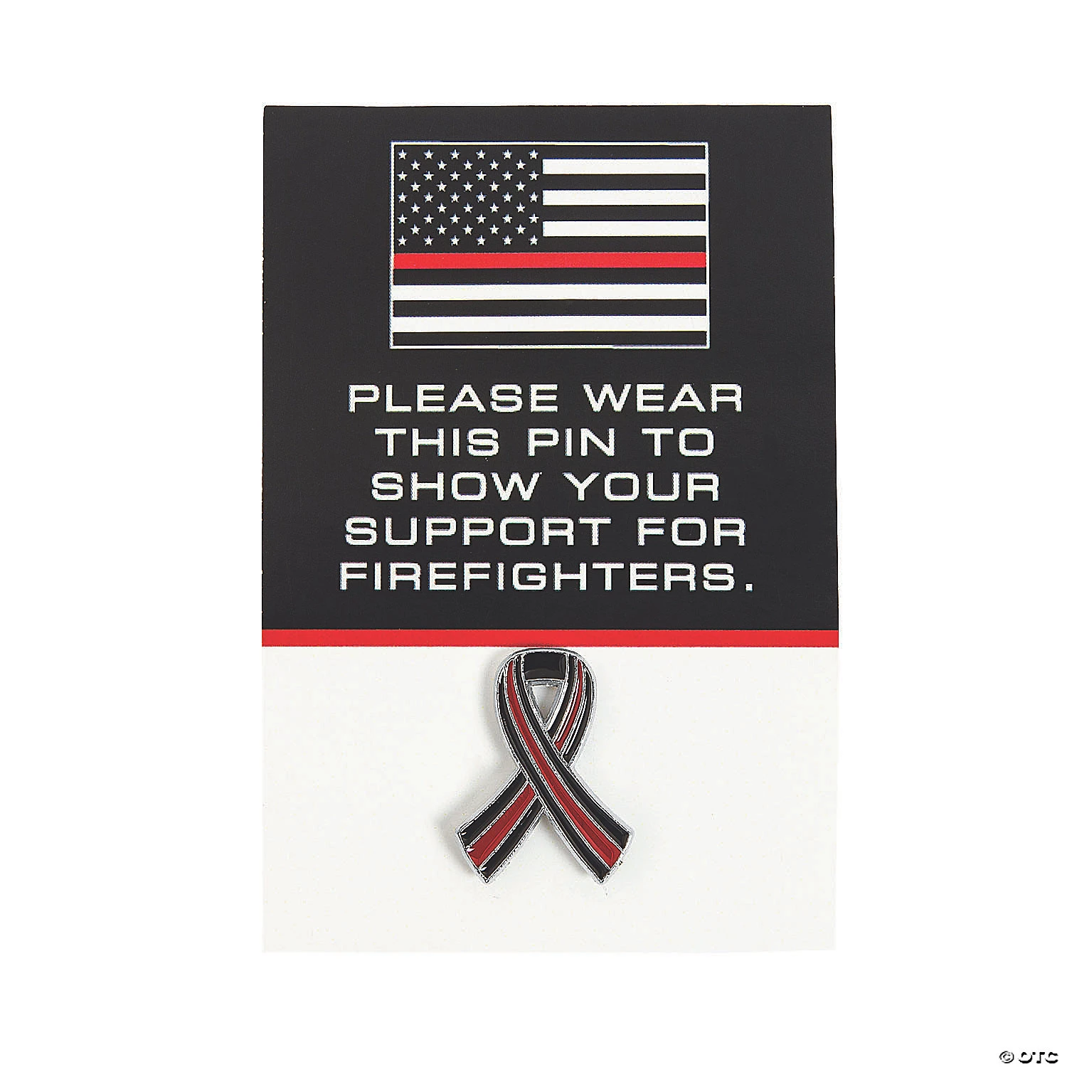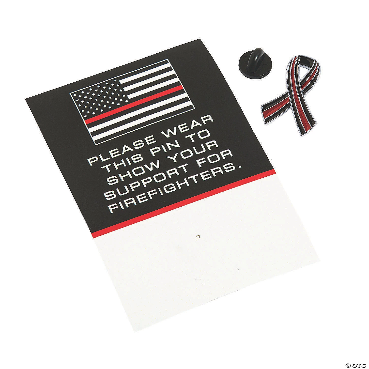 Make a statement for firefighter awareness with these Thin Red Line Awareness Pins. The crowd-pleasing giveaway items are attached to cards printed with “Please wear this pin to show your support for firefighters.” Pass the ribbon pins out from the firetruck at a community parade or give them to donors as fundraising event favors. Each 1″ metal pin is on a 2 1/2″ x 3 3/4″ paper card. © OTC