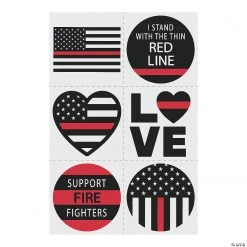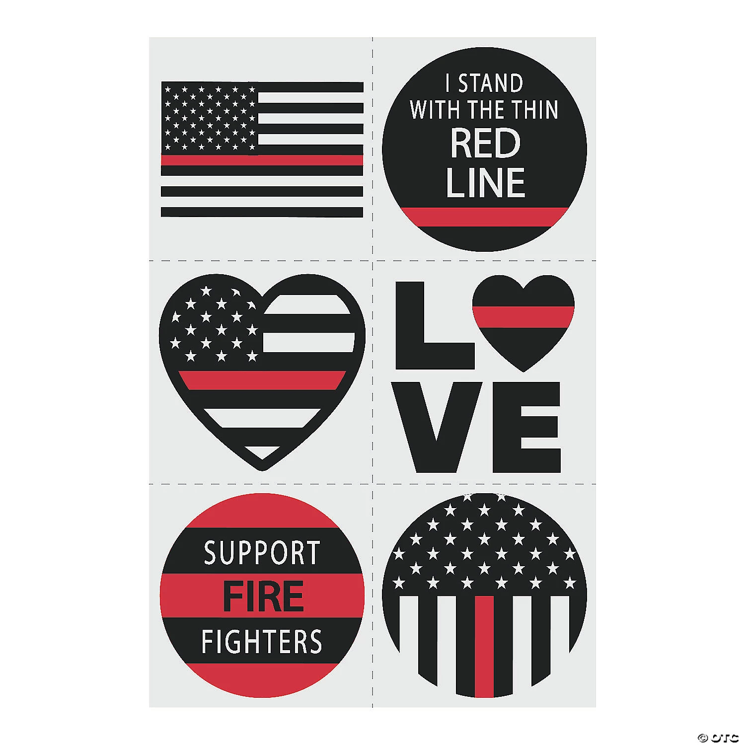 Wear your pride and celebrate the brave men and women who keep us safe! Perfect as community event giveaways and favors, these temporary tattoos pay homage to fire fighters, featuring a simple yet statement-making thin red line design. From American flags to hearts to statements of support, you’ll want to share this assortment with everyone! Easy to apply and remove. Safe and non-toxic. (6 dozen per unit) 1 1/2″ © OTC