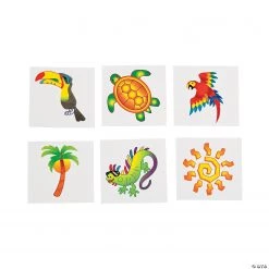 Treat yourself to some tropical temporary tattoos! They’re a simple, colorful way to get into the luau spirit. Throwing a Hawaiian party? Hand them out to guests in party favor bags. They’re suitable for kids and adults and make everyone feel bright! These temporary tattoos are easy to apply and remove. Safe and non-toxic. (6 dozen per unit) 1 1/2″ © OTC