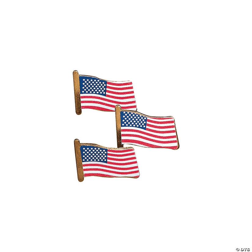 Share your patriotism with this generous pack of pins! Give these flag pins out during your 4th of July party, Independence Day parade, or in patriotic party favor bags. Everyone loves to display the red, white and blue! Each pin includes an American Flag sticker and is not painted on. Looking for more patriotic party supplies? Shop even more red, white and blue buys on our site. Metal. (6 dozen per unit) 3/4″