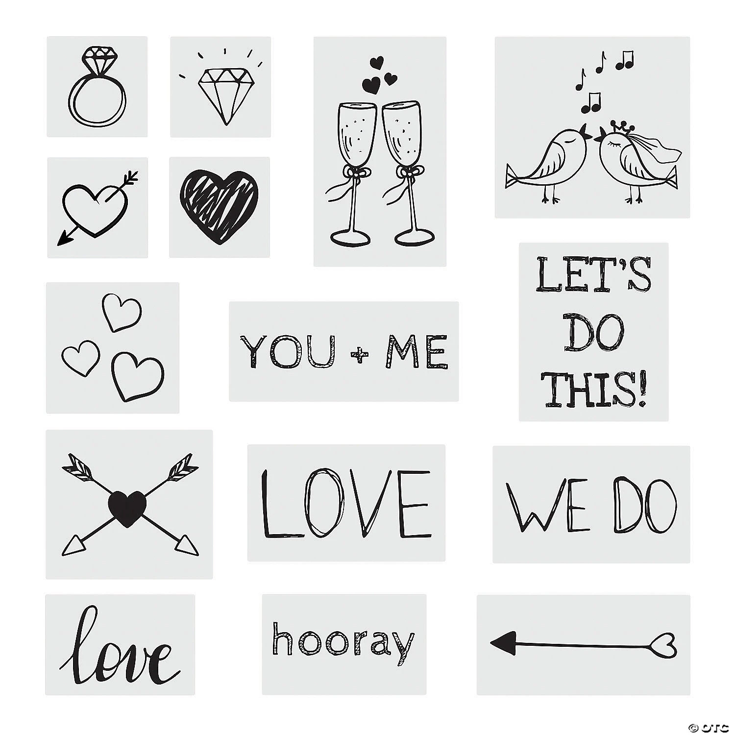 Add a little (temporary) ink to your wedding reception photo booth with this temporary tattoo assortment! With 15 different designs all about love, you can even use them at bridal showers, couple’s showers or any event that celebrates the new or future married couple. Easy to apply and remove. Safe and non-toxic. Paper. (120 pcs. per unit) 1 1/2″ x 3 1/2″ Assortment may vary. © OTC