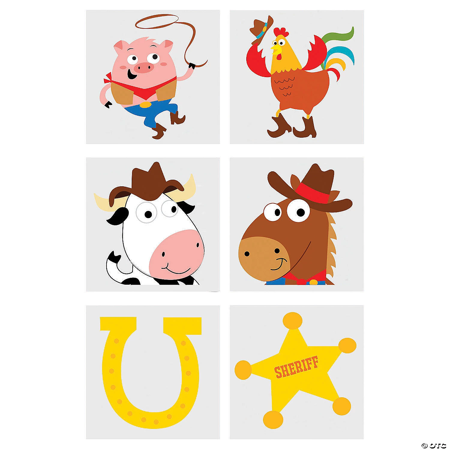 Great party favors, giveaways and prizes for any fun occasion, temporary tattoos are always popular with young cowboys and cowgirls. These western animals are sure to be a hit with your little buckaroos. As a fun party activity, create a tattoo station and have your young party guests get inked with their favorite western animal or shape. Easy to apply and remove. Safe and non-toxic. Paper. (6 dozen per unit) 1 1/2″ © OTC
